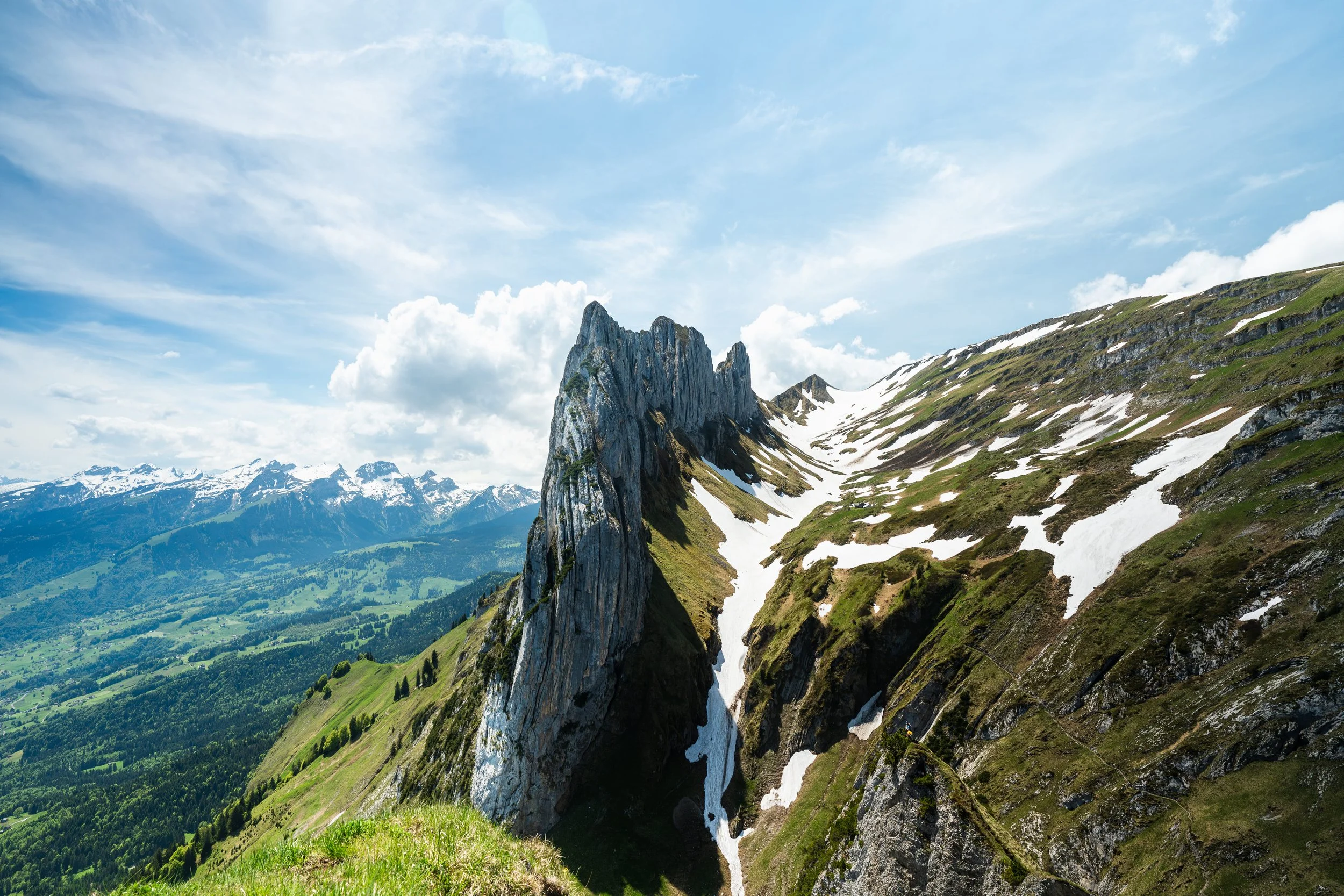Returning in summer, the same mountains were transformed into a beautiful scene of green meadows with colorful wildflowers, and the warm sun shining on the incredible rock formations. Both visits, though contrasting in season, showcased the timeless beauty and versatility of Saxer Lücke, making it a truly unforgettable destination in every season.